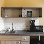 У цьому помешканні до послуг гостей кавоварка і мінікухня з мікрохвильовою піччю, електрочайником і холодильником.
